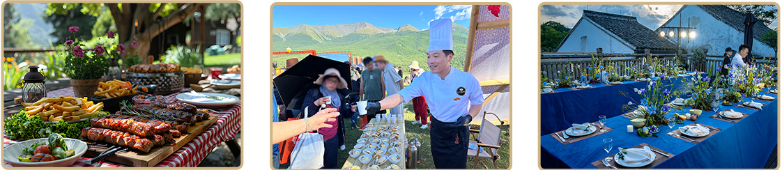 场景化主题设计: 从"东方禅意"到"摩登复古",从"地中海花园"到"赛博朋克",我们提供全场景的主题策划,美食、音乐、器皿、装饰融为一体,构建一个沉浸式的感官世界。